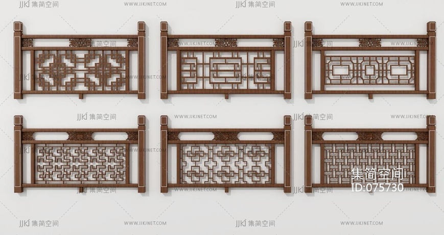 16中式实木雕花栏杆,围栏,护栏,扶手, 3d模型下载 [模型ID:75730]