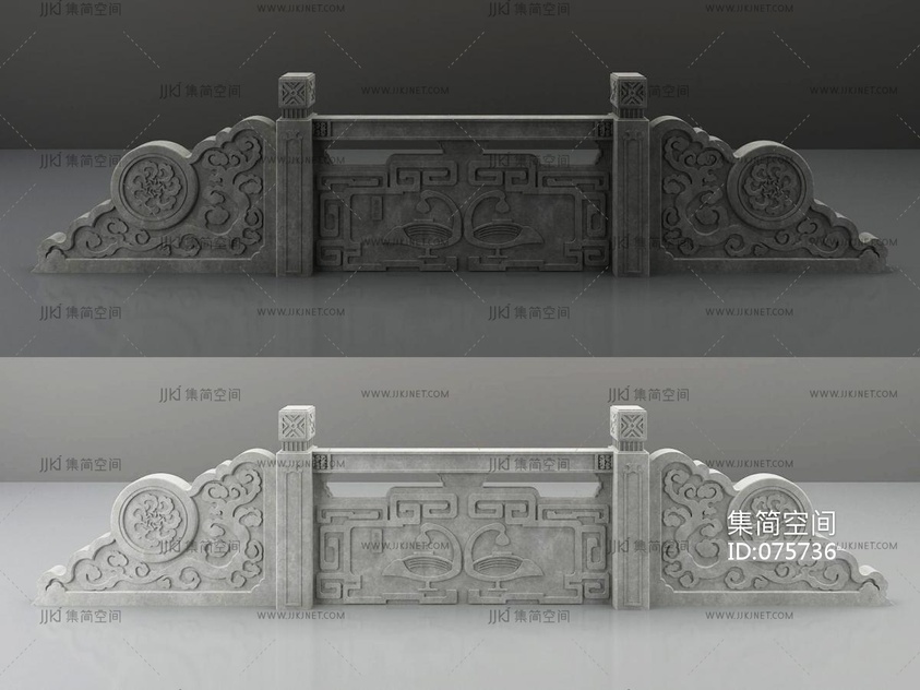 中式栏杆,仙鹤云纹雕花,浮雕,石雕,栏杆扶手,护栏 3d模型下载 [模型ID:75736]
