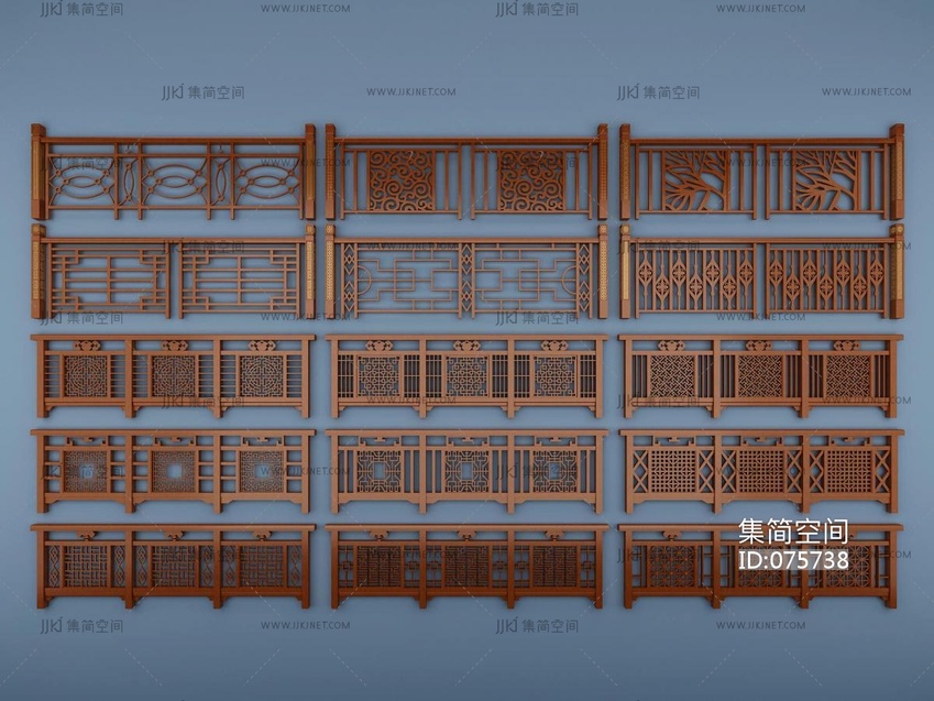中式实木雕花栏杆,围栏,护栏,扶手, 3d模型下载 [模型ID:75738]