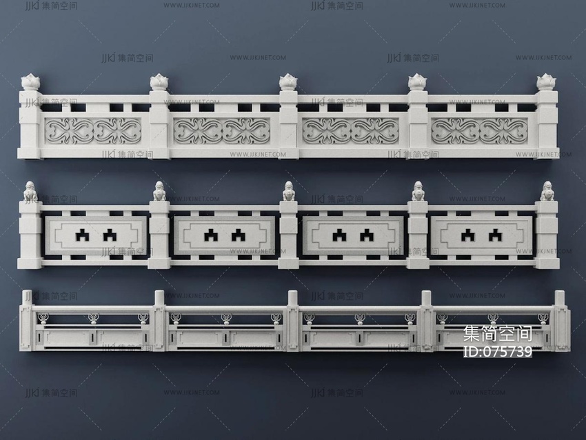 中式栏杆石材,雕花扶手, 3d模型下载 [模型ID:75739]