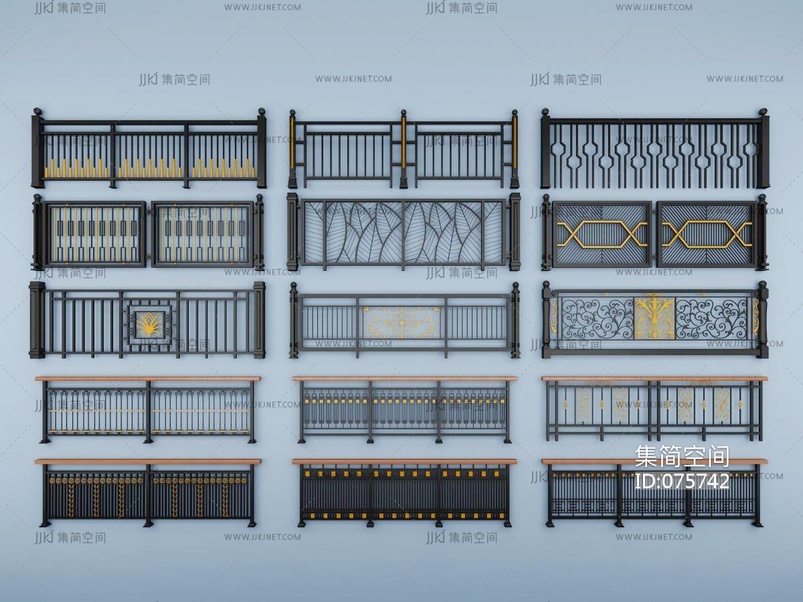 中式欧式铁艺雕花栏杆,扶手,护栏, 3d模型下载 [模型ID:75742]