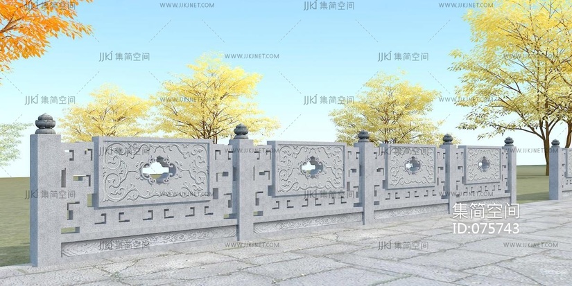 中式石材,玉石,栏杆扶手,护栏,绿植,树 3d模型下载 [模型ID:75743]