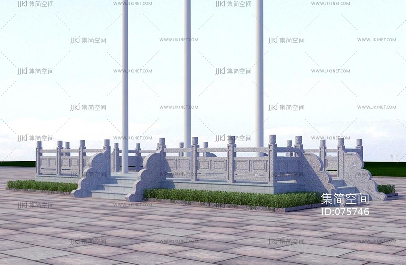 中式雕花国旗杆,旗台,石材围栏,中式石材 3d模型下载 [模型ID:75746]