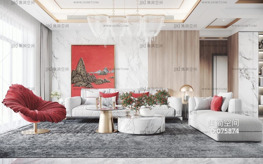 现代客厅 3d模型 (1)3d模型下载