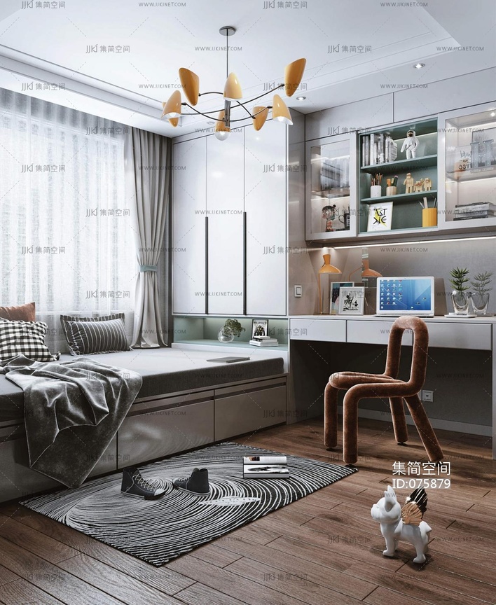 现代loft风格榻榻米卧室 3d模型下载 [模型ID:75879]