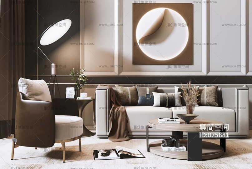 新中式沙发茶几落地灯组合 3d模型下载 [模型ID:75881]