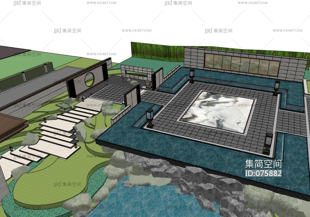 现代玄关植物造景,景观小品SU模型su草图模型下载