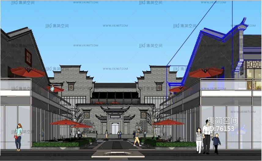 267中式风格商业街民国风商业街 su草图模型下载 [模型ID:76153]