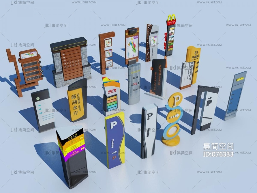 户外商场道路引导牌,指示牌,标识牌 3d模型下载 [模型ID:76333]