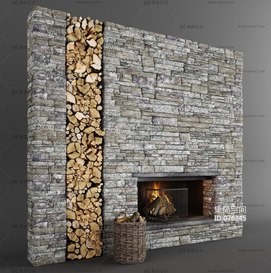 背景墙火炉藤编编织箩筐 3d模型下载 [模型ID:76345]