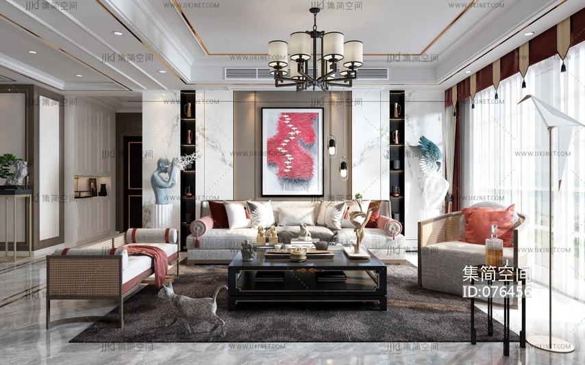 新中式客餐厅 3d模型下载 [模型ID:76456]