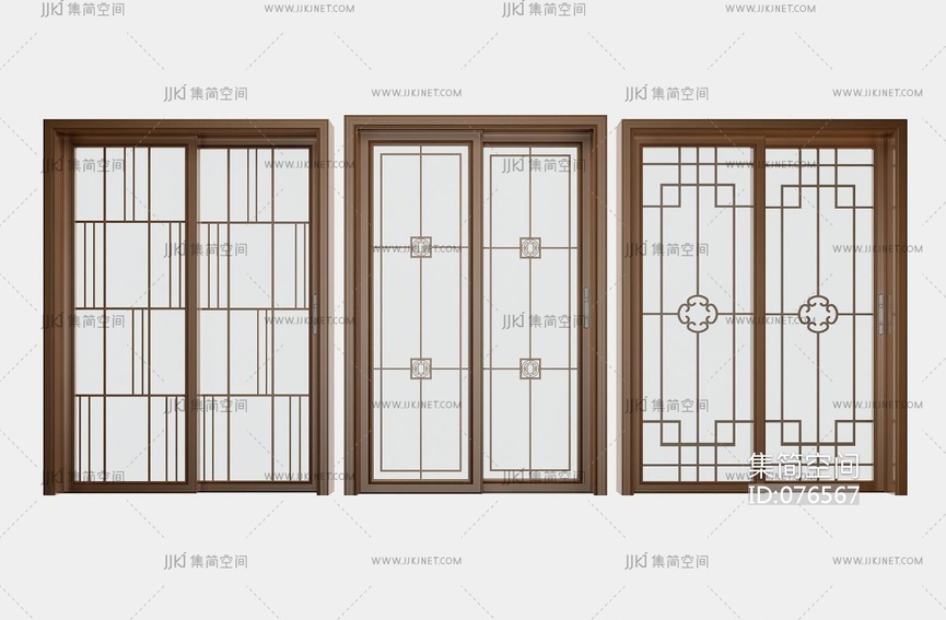 新中式铝合金玻璃推拉门 3d模型下载 [模型ID:76567]