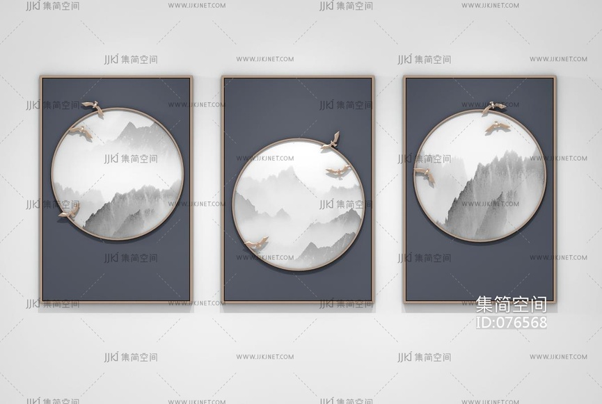 新中式挂画组合 3d模型下载 [模型ID:76568]