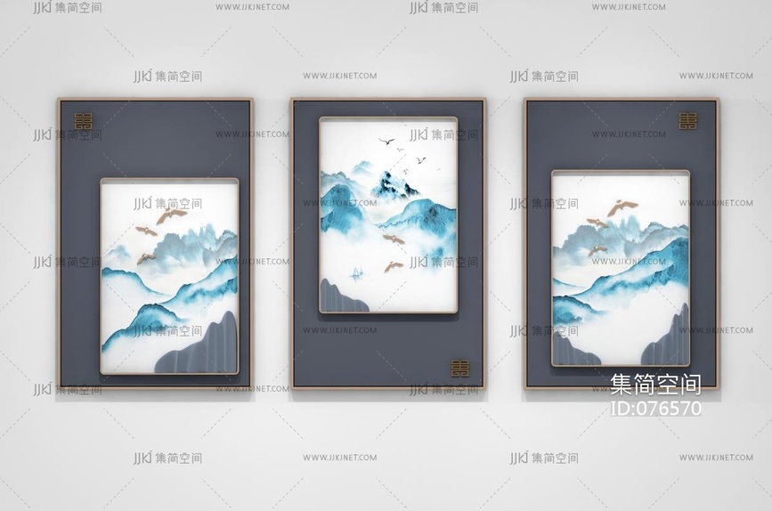 新中式挂画组合 3d模型下载 [模型ID:76570]