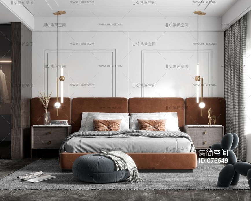 现代轻奢卧室 3d模型下载 [模型ID:76649]