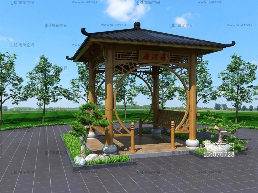 10中式景观凉亭,绿植,树, 3d模型下载 [模型ID:76728]