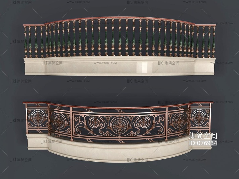 欧式铁艺雕花栏杆护栏 3d模型下载 [模型ID:76934]