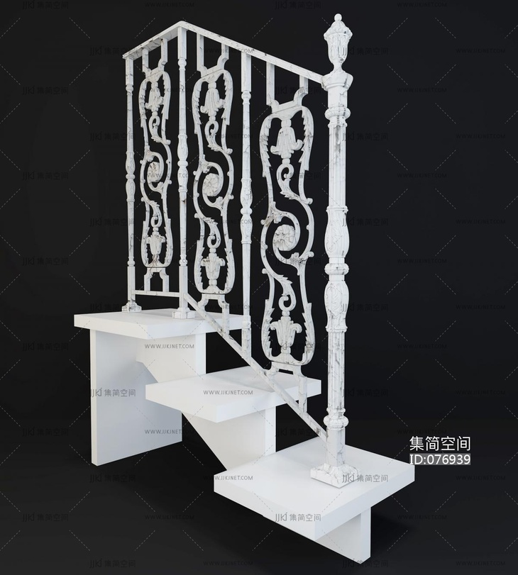 欧式铁艺雕花栏杆护栏 3d模型下载 [模型ID:76939]