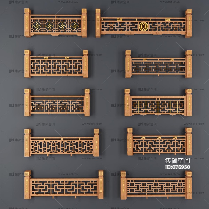 中式实木栏杆, 3d模型下载 [模型ID:76950]