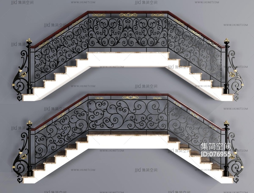 欧式铁艺雕花栏杆护栏 3d模型下载 [模型ID:76955]