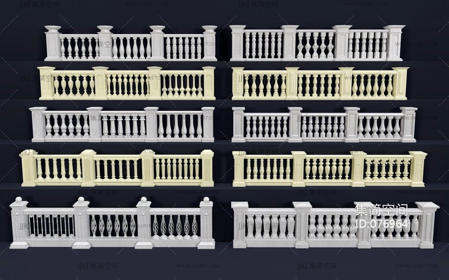 欧式铁艺雕花栏杆护栏 3d模型下载 [模型ID:76964]