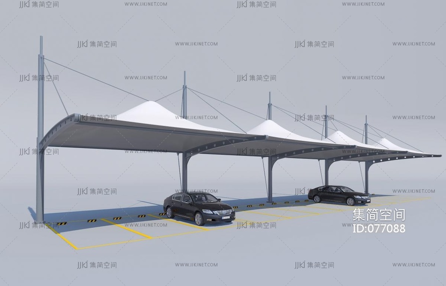 现代车棚,停车位,张拉膜结构,遮阳棚,雨棚 3d模型下载 [模型ID:77088]