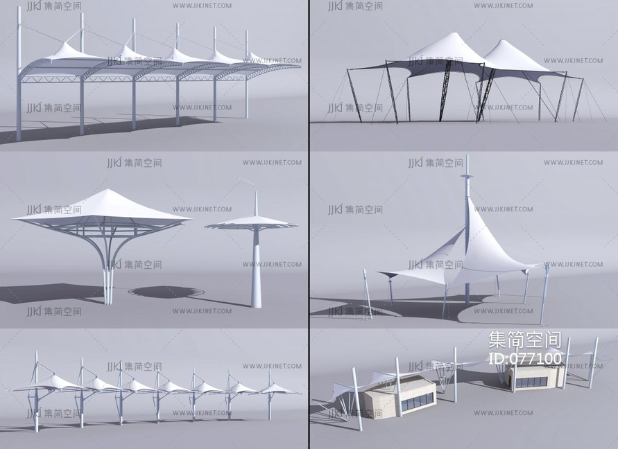现代异形张拉膜结构,雨棚,遮阳棚,自行车棚 3d模型下载 [模型ID:77100]