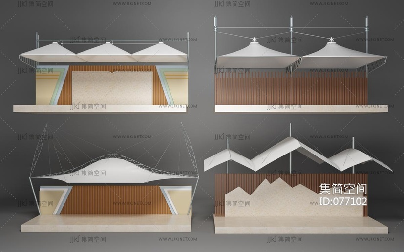 现代舞台,异形张拉膜结构,雨棚,遮阳棚, 3d模型下载 [模型ID:77102]