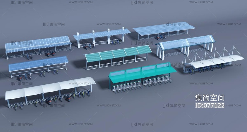现代自行车,电动车,车架,玻璃钢架雨棚遮阳棚 3d模型下载 [模型ID:77122]