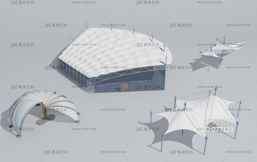 异形现代张拉膜,膜结构,遮阳棚 3d模型下载 [模型ID:77123]