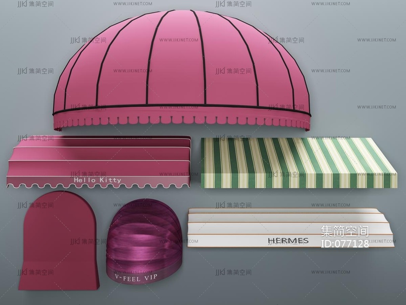 现代布艺遮阳篷套装 kitbash3d模型下载