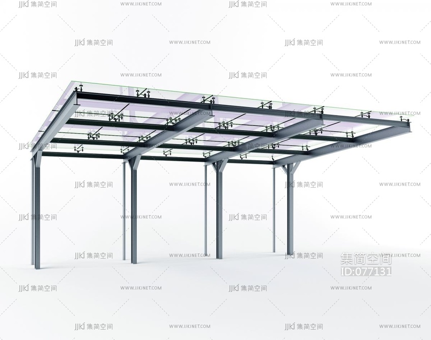 现代玻璃钢架遮阳棚,雨棚,自行车棚 3d模型下载 [模型ID:77131]