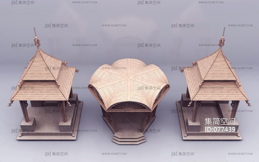 现代布艺遮阳篷套装 kitbash3d模型下载