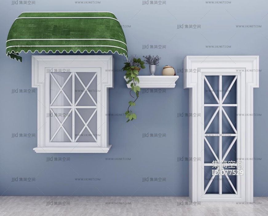 现代布艺遮阳篷套装 kitbash3d模型下载