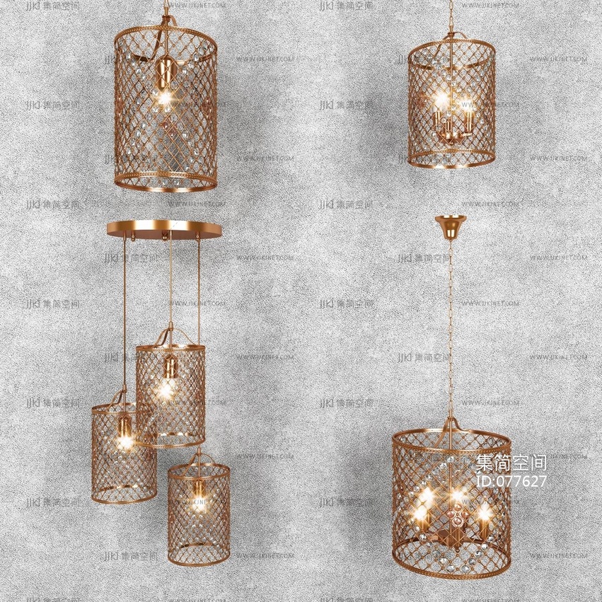 法式吊灯水晶吊灯灯罩吊灯3D模型3d模型下载