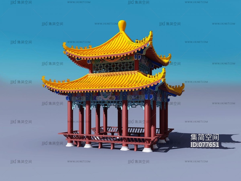 凉亭 中式古建彩绘凉亭 3d模型下载 [模型ID:77651]