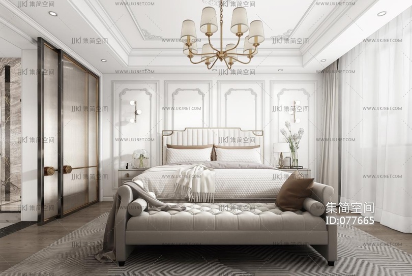 6法式中古家居卧室_主卧_飘窗卧室_高级灰卧室3D模型cr3d模型下载
