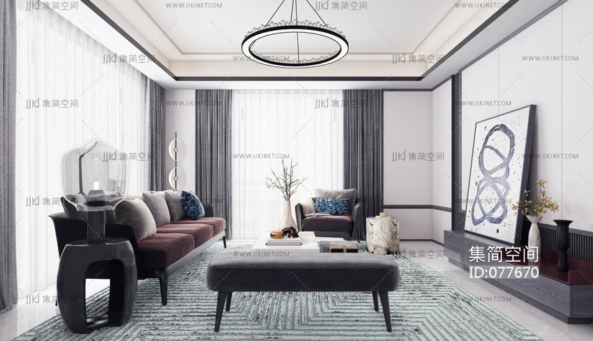 现代客厅 3d模型下载 [模型ID:77670]