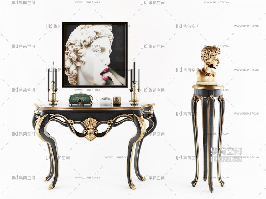 新中式条案 端景台,格栅3d模型 3d模型下载