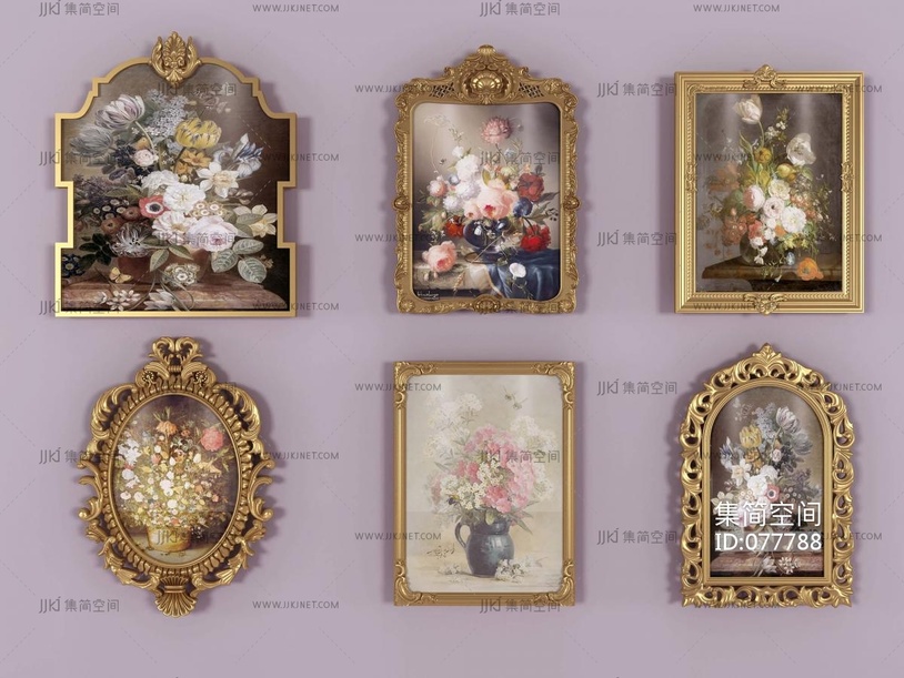 法式中古挂画_装饰画_组合3D模型3d模型下载