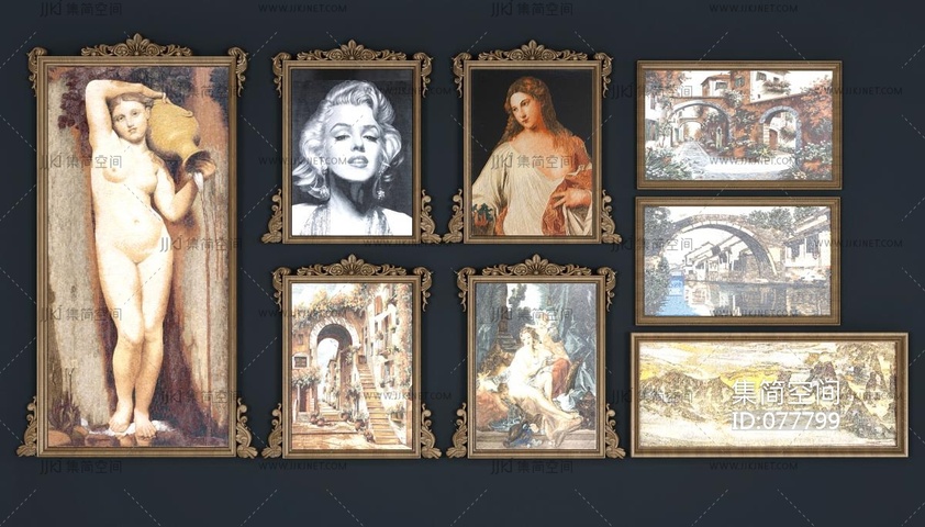 法式中古挂画_装饰画_组合3D模型3d模型下载