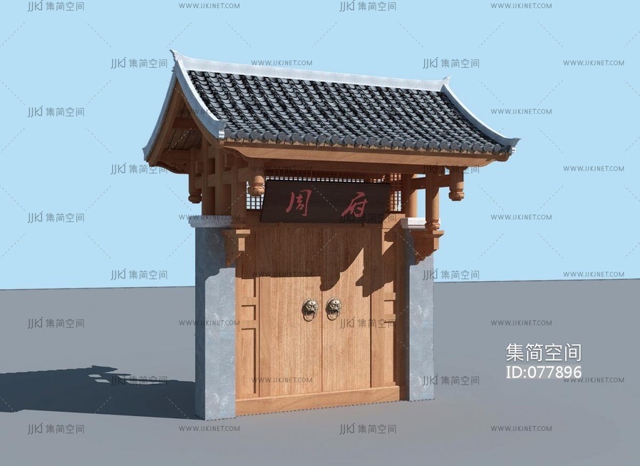 中式古建大门门楼,牌匾门头 3d模型下载 [模型ID:77896]