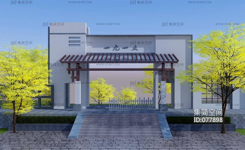 新中式大公园,别墅入户大门门头,门楼,,树 3d模型下载 [模型ID:77898]