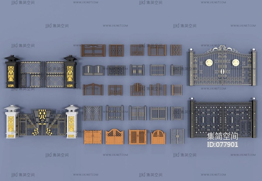 欧式铁艺雕花大门,柱子 3d模型下载 [模型ID:77901]