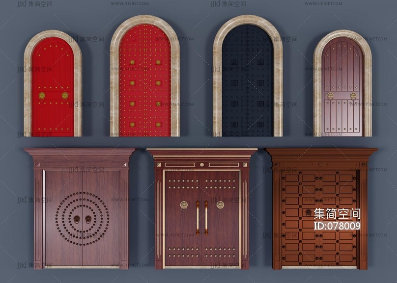 中式古典红漆大门 3d模型下载 [模型ID:78009]