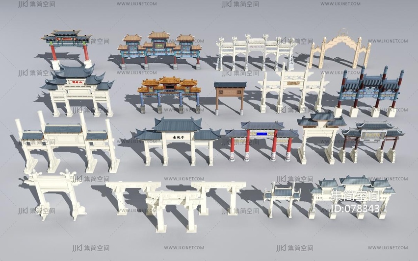 中式古典垂花门,门头牌楼3d模型下载