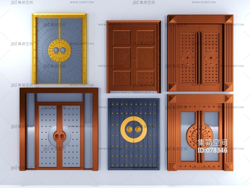 中式古典双开门 3d模型下载 [模型ID:78346]