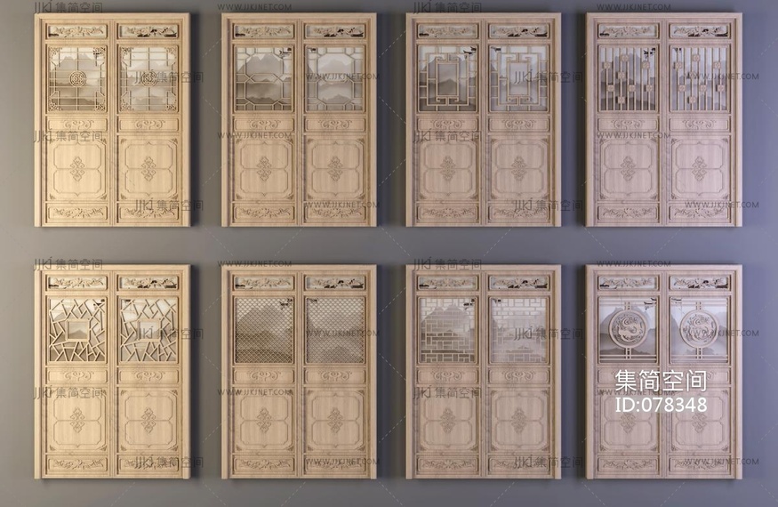 中式双开门 3d模型下载 [模型ID:78348]