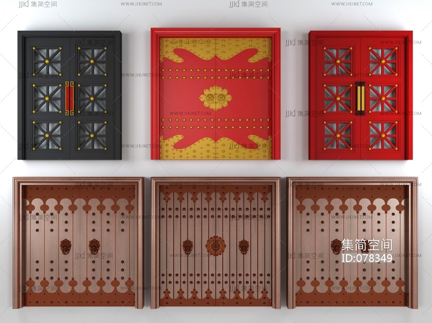 中式欧式实木双开门, 3d模型下载 [模型ID:78349]