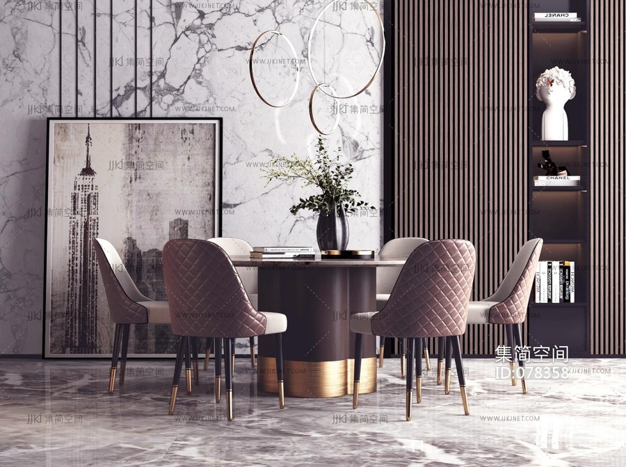 现代圆形大理石餐桌椅 3d模型下载 [模型ID:78358]
